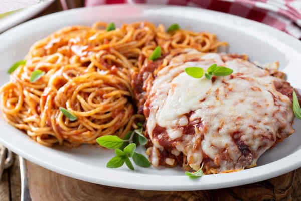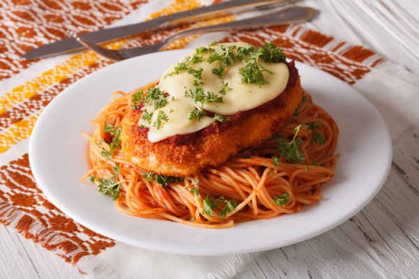 Veal Parmigiana Pasta is veal cutlets dredged in seasoned flour and fried, topped with tomato sauce and melted mozzarella cheese…